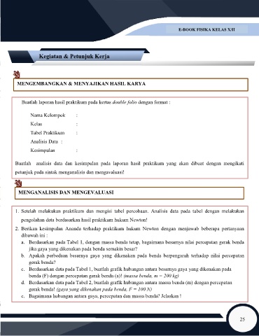 e. Bagaimana hubungan antara gaya, percepatan dan massa benda? Jelaskan !