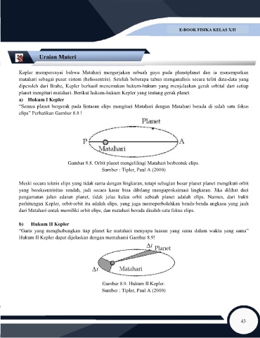 Hukum II Kepler dapat dijelaskan dengan memahami Gambar 8.9!