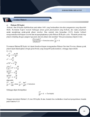 Persamaan Hukum III Kepler ini dapat dianalisa dengan menggunakan Hukum Gravitasi Newton, dimana gerak
