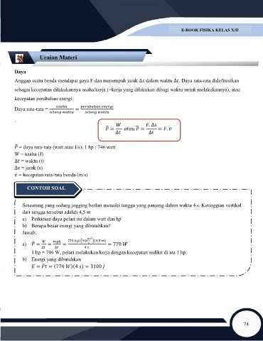 1 hp = 746 W, pelari melakukan kerja dengan kecepatan sedikit di ata 1 hp.