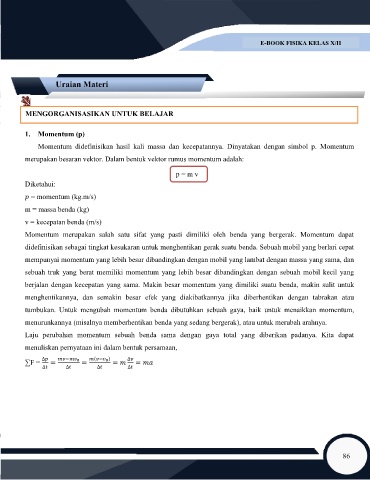 Momentum didefinisikan hasil kali massa dan kecepatannya. Dinyatakan dengan simbol p. Momentum