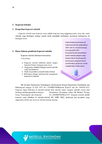 Kerja, Transmigrasi dan Koperasi No. 638/SKPTS/Men/1974. Koperasi sekolah adalah