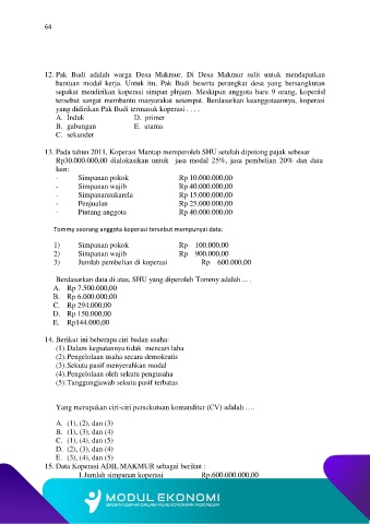 15. Data Koperasi ADIL MAKMUR sebagai berikut :