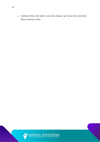 67 e. modalnya berasal dari pihak swasta dan sebagian lagi berasal dari pemerintah. Tujuan usahanya nirlaba.