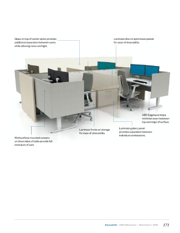 Glass on top of center spine provides Laminate tiles on spine base panels