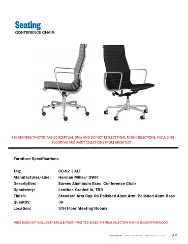 PRICE DOES NOT INCLUDE FABRIC/LEATHER-PRICE TBD BASED ON FINAL SELECTION WITH GENSLER/STARWOOD