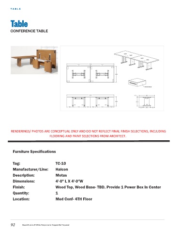 Finish: Wood Top, Wood Base- TBD. Provide 1 Power Box In Center