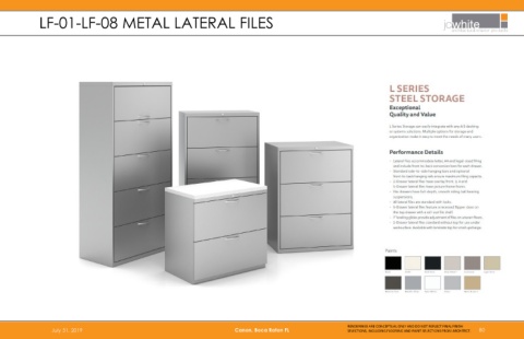 LF-01-LF-08 METAL LATERAL FILES RENDERINGS ARE CONCEPTUAL ONLY AND DO NOT REFLECT FINAL FINISH July 31, 2019 Canon, Boca Raton FL SELECTIONS, INCLUDING FLOORING AND PAINT SELECTIONS FROM ARCHITECT. 80