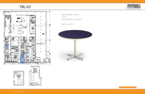 TBL-02 CBP GROUND FLOOR QTY:3 MGF:VERSTEEL / BRATTICE 36”DIA X 29”HT June 14, 2019 24