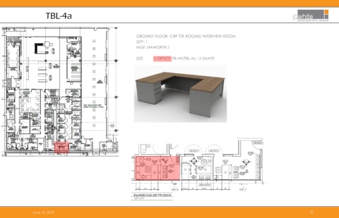 TBL-4a GROUND FLOOR- CBP TTR ROOMS/ INTERVIEW ROOM QTY: 1 MGF: HAWORTH / SIZE 1 OFFICE FR-4?/TBL-4a : U SHAPE June 14, 2019 27