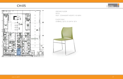 CH-05 GROUND FLOOR QTY:8 MGF: COMMUNITY HOOPZ / HZ143PA PLASTIC SEAT OVERALL: 22”D 21-3/4”W 33”H June 14, 2019 37
