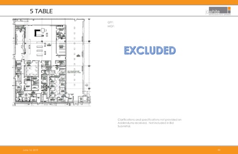 5 TABLE QTY: MGF: Clarifications and specifications not provided on Addendums received. Not included in Bid Submittal. June 14, 2019 44