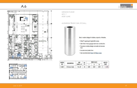 A.6 GROUND FLOOR QTY: 7 MGF: ULINE ALUMINUM TRASH CAN, 35 GALL. June 14, 2019 49