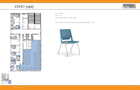 CH-01 (opt) 2 nd FLOOR QTY: 115 MGF: HAWORTH/ VERY SIDE Very Side,Plstc Seat,Perforated Bk,Armless,Plstc Gld, June 14, 2019 52