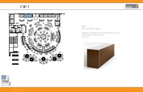 CW-1 QTY:2 MFG: NUCRAFT / FLOW CREDENZA SIZE: 90x20x29.5 FIVE DOOR (FWCC-9029-GG) VENEER CASE, GLOSS GLASS TOP. NO LOCKS June 14, 2019 9