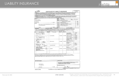 LIABILITY INSURANCE *Images, materials, and renderings are for visual purposes only. Final finishes may February 22, 2023 SPIRIT AIRLINES 95 affect final price. Client must review physical finish samples before placing order.