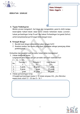 menerapkan hukum-hukum dasar kimia (hukum kekekalan massa Lavoisier,
