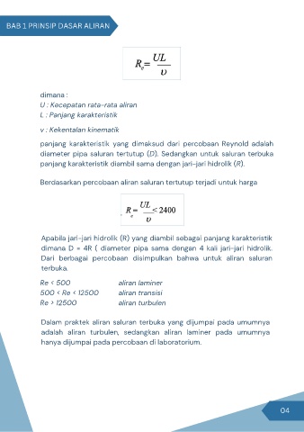 Apabila jari-jari hidrolik (R) yang diambil sebagai panjang karakteristik