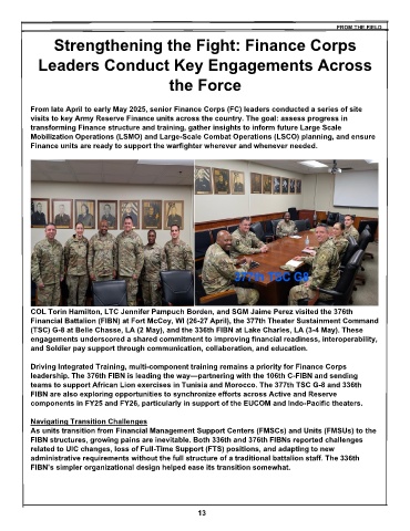 visits to key Army Reserve Finance units across the country. The goal: assess progress in