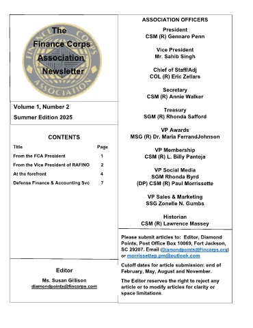From the FCA President 1 CSM (R) L. Billy Pantoja