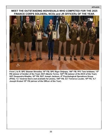 FINANCE CORPS SOLDIERs, NCOs and JR OFFICERs OF THE YEAR.
