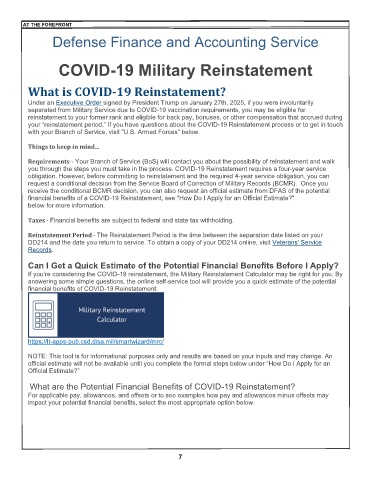 If you’re considering the COVID-19 reinstatement, the Military Reinstatement Calculator may be right for you. By