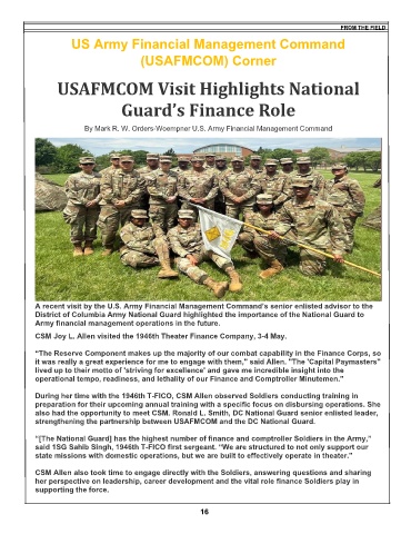 “[The National Guard] has the highest number of finance and comptroller Soldiers in the Army,”