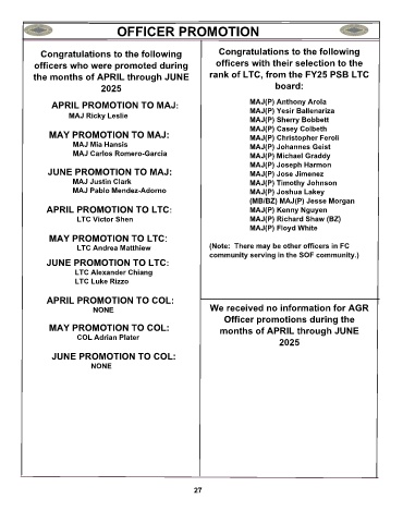 SEPTEMBER PROMOTION TO MAJ: (Note: There may be other officers in FC
