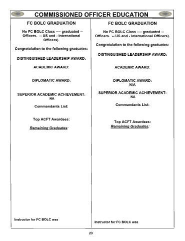 No FC BOLC Class ---- graduated --                    No FC BOLC Class ---- graduated --