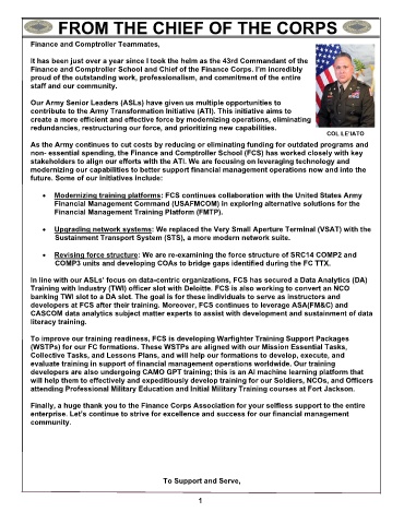 Finance and Comptroller School and Chief of the Finance Corps. I’m incredibly