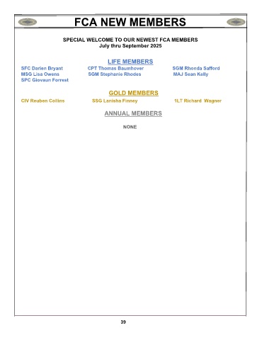 SPECIAL WELCOME TO OUR NEWEST FCA MEMBERS