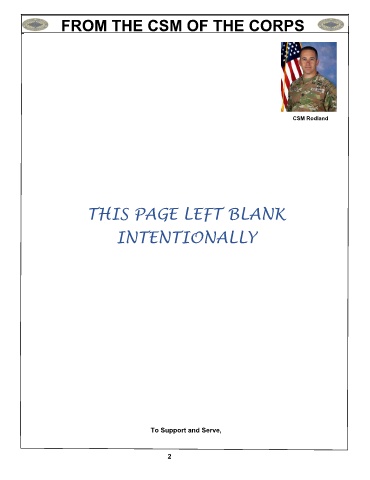 FROM THE CSM OF THE CORPS lllkkkkkk CSM Rodland THIS PAGE LEFT BLANK INTENTIONALLY To Support and Serve, 2