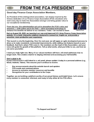that on August 20, 2025, we launched our new and improved U.S. Army Finance Corps Association