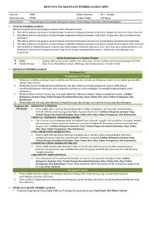 Media : Laptop, LCD, power point, gambar dan video yang relevan, fasilitas internet dan Lapangan Sekolah