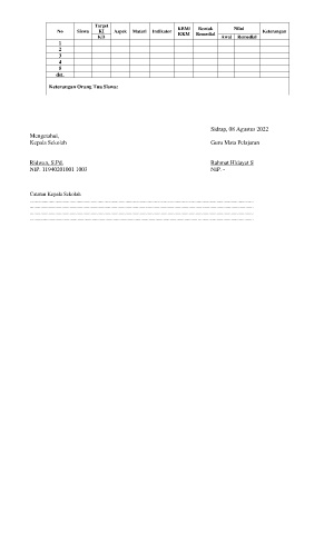 No Siswa KI Aspek Materi Indikator KBM/ Remedial Nilai Keterangan
