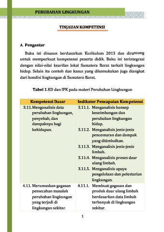 Tabel 1.KD dan IPK pada materi Perubahan Lingkungan