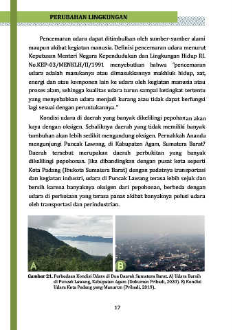 Gambar 21. Perbedaan Kondisi Udara di Dua Daerah Sumatera Barat. A) Udara Bersih