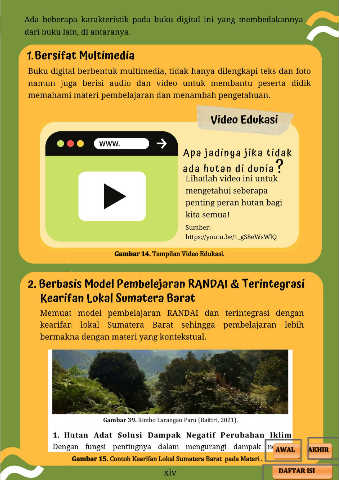 PERUBAHAN LINGKUNGAN Gambar 14. Tampilan Video Edukasi. AWAL AKHIR 2 AWAL AKHIR Gambar 15. Contoh Kearifan Lokal Sumatera Barat pada Materi . DAFTAR ISI DAFTAR ISI
