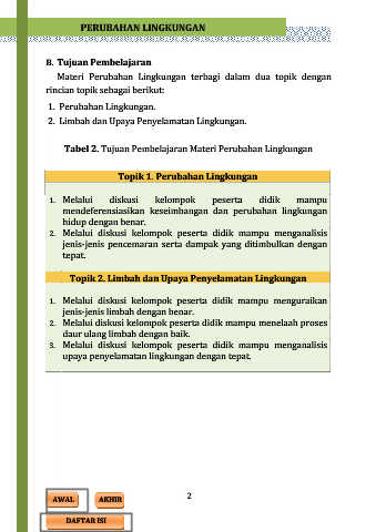 Materi Perubahan Lingkungan terbagi dalam dua topik dengan