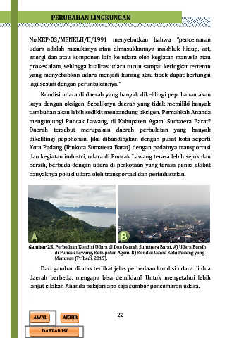 Gambar 25. Perbedaan Kondisi Udara di Dua Daerah Sumatera Barat. A) Udara Bersih