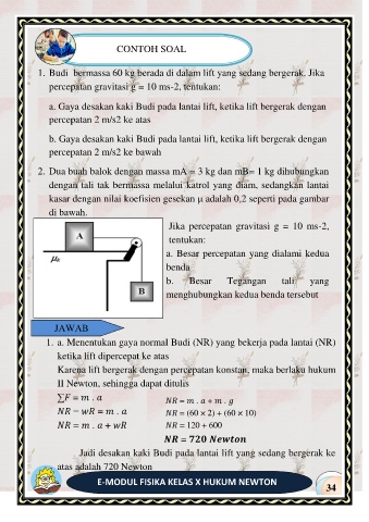 1. Budi bermassa 60 kg berada di dalam lift yang sedang bergerak. Jika