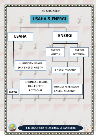 PETA KONSEP USAHA & ENERGI USAHA ENERGI ENERGI ENERGI KINETIK POTENSIAL HUBUNGAN USAHA DAN ENERGI KINETIK ENERGI MEKANIK HUBUNGAN USAHA DAN ENERGI HUKUM KEKEKALAN POTENSIAL ENERGI MEKANIK DAYA E-MODUL FISIKA KELAS X USAHA DAN ENERGI 44