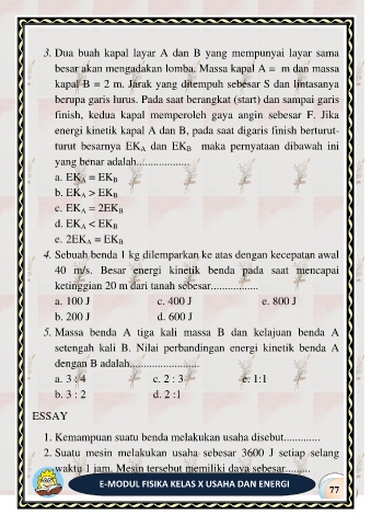 setengah kali B. Nilai perbandingan energi kinetik benda A