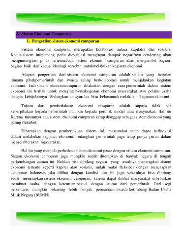 menguntungkan pihak tertentu.Jadi, sistem ekonomi campuran akan mengambil bagian-