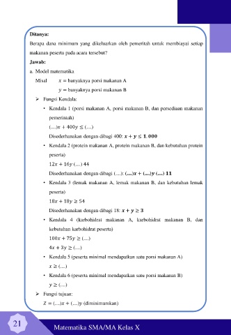 • Kendala 5 (peserta minimal mendapatkan satu porsi makanan A)
