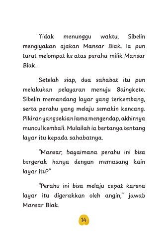 layar itu digerakkan oleh angin,“ jawab