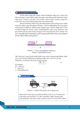 gaya tersebut dapat dikatakan melakukan usaha atau work (W). Secara