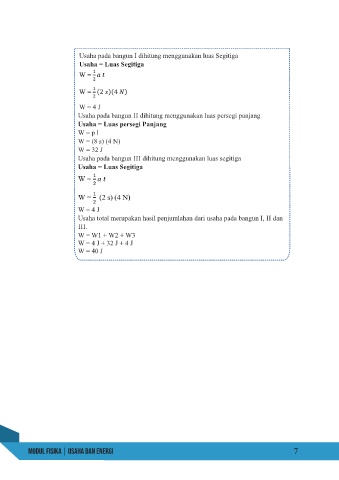 Usaha total merupakan hasil penjumlahan dari usaha pada bangun I, II dan