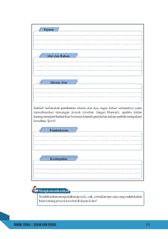 Setalah kalian mengerjakan proyek, yuk, ceritakan apa saja yang sudah kalian