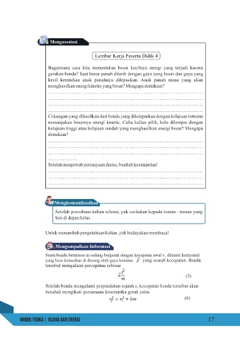 menunjukan besarnya energi kinetic. Coba kalian pilih, bola dilempar dengan